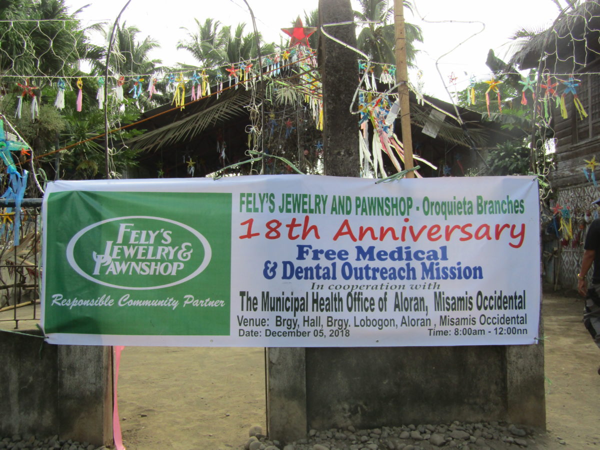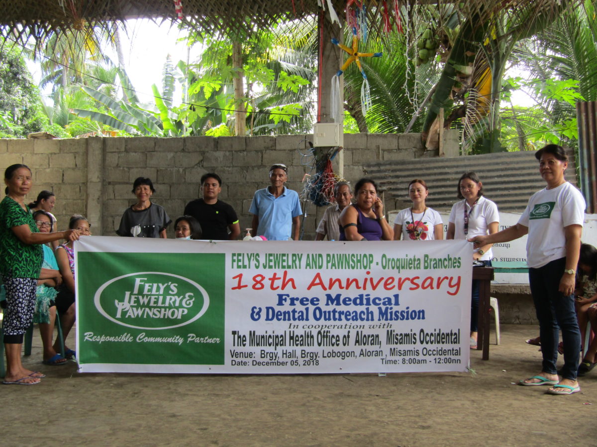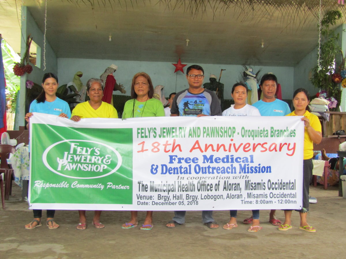 Fely’s Jewelry and Pawnshop celebrates its 18th Anniversary of being established in the City of Oroquieta by continually living on its commitment of being a Responsible Community Partner through conducting a Free Annual Medical and Dental Outreach Missions to every Cities and Municipalities the company’s branches have operated.