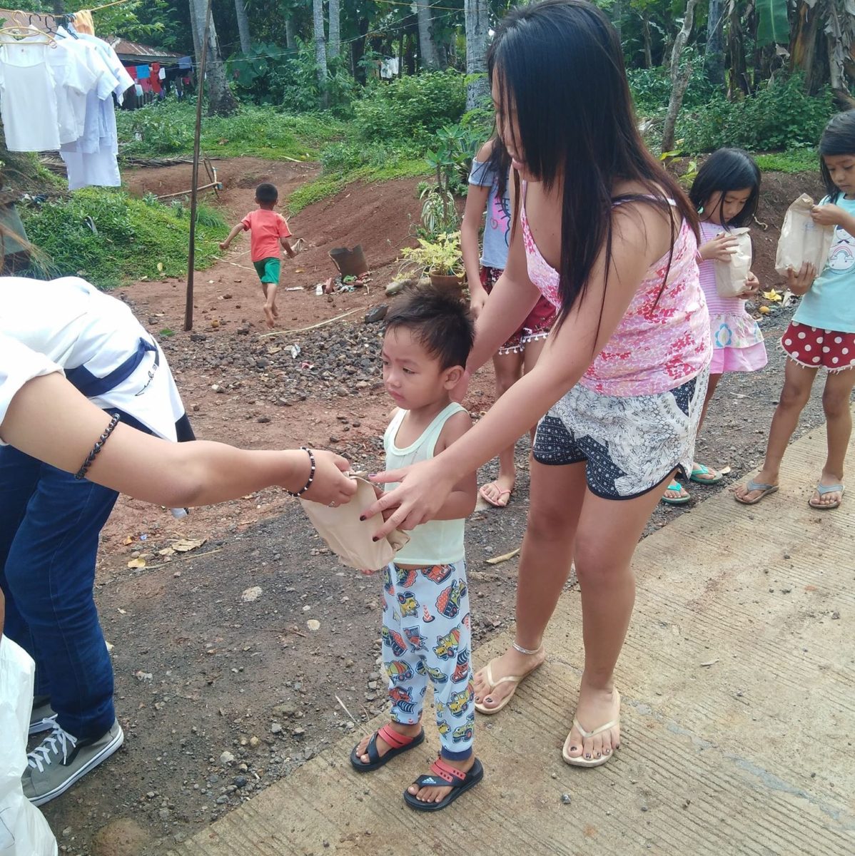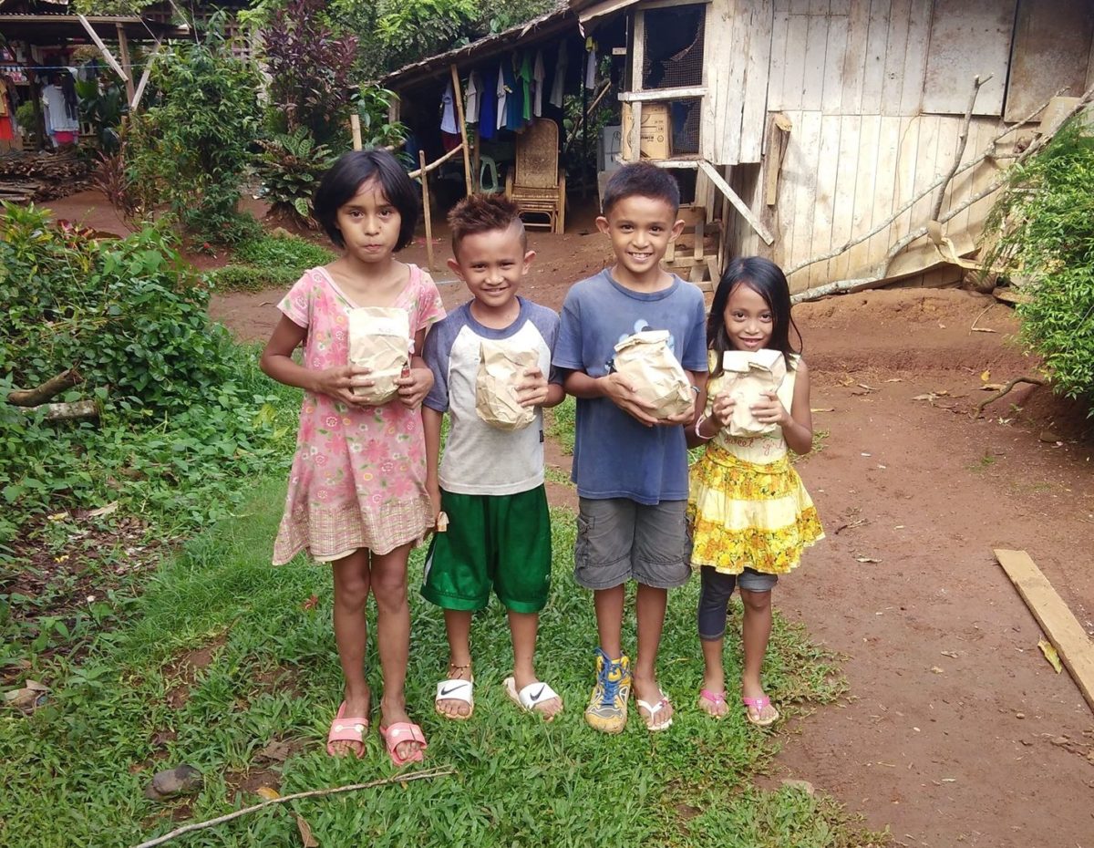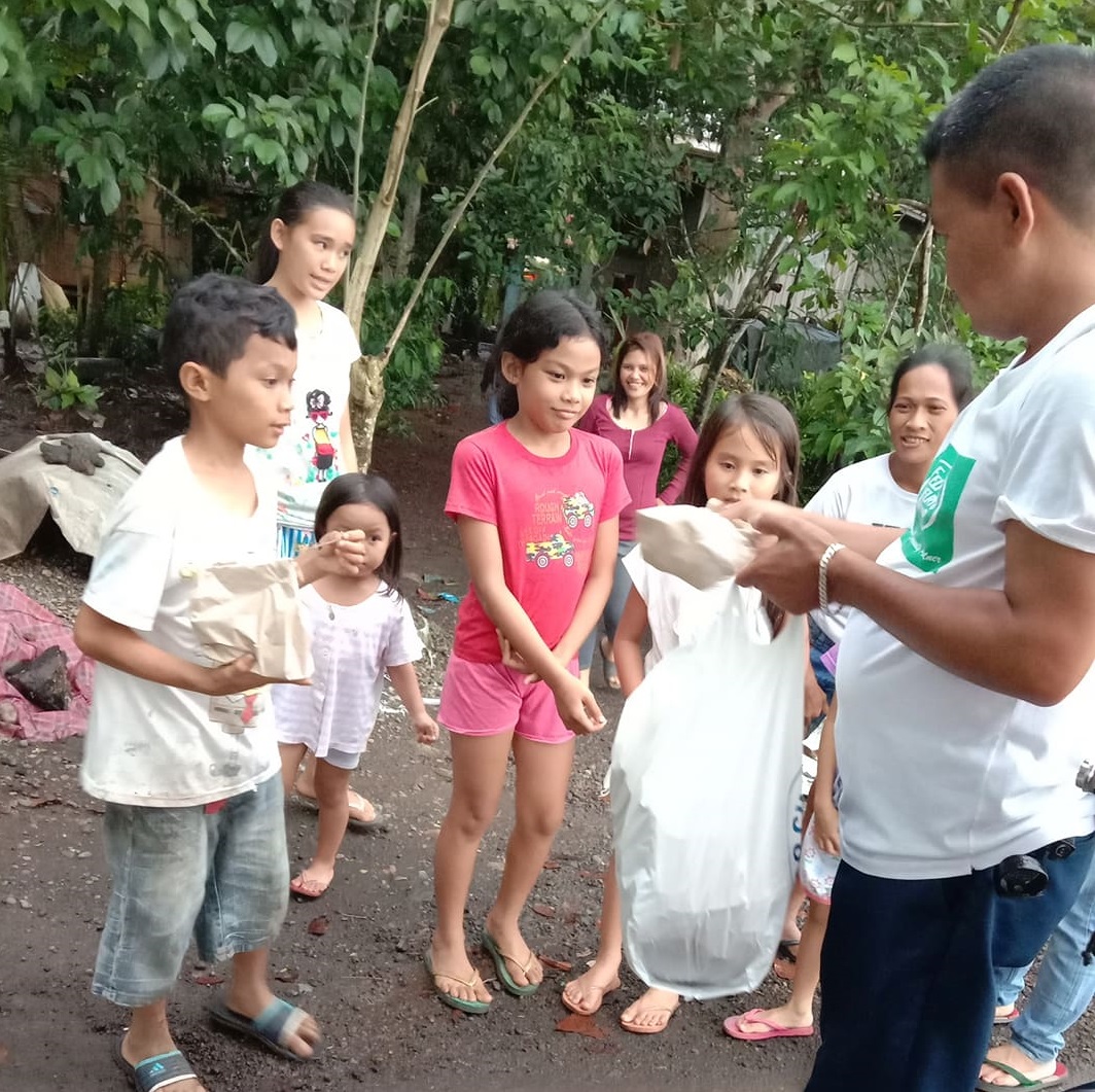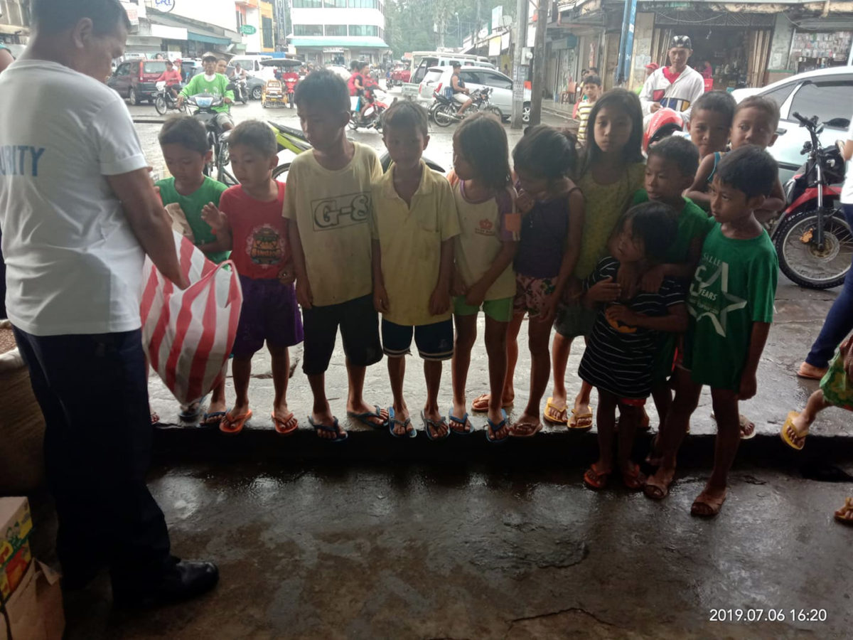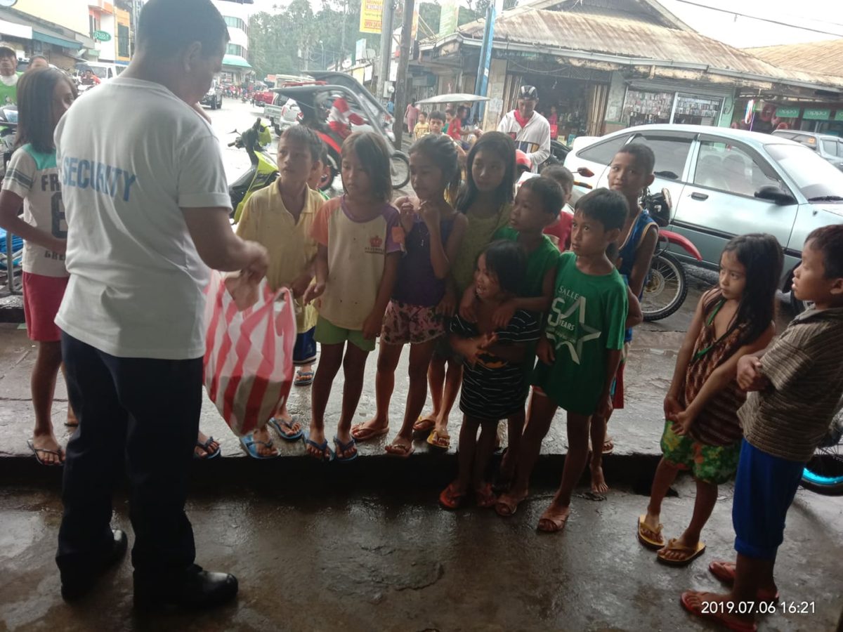 Children from Sta. Lucia and Kawit and Sta. Niño Pagadian City receiving the food packs distributed by Pagadian Branch’s employees.