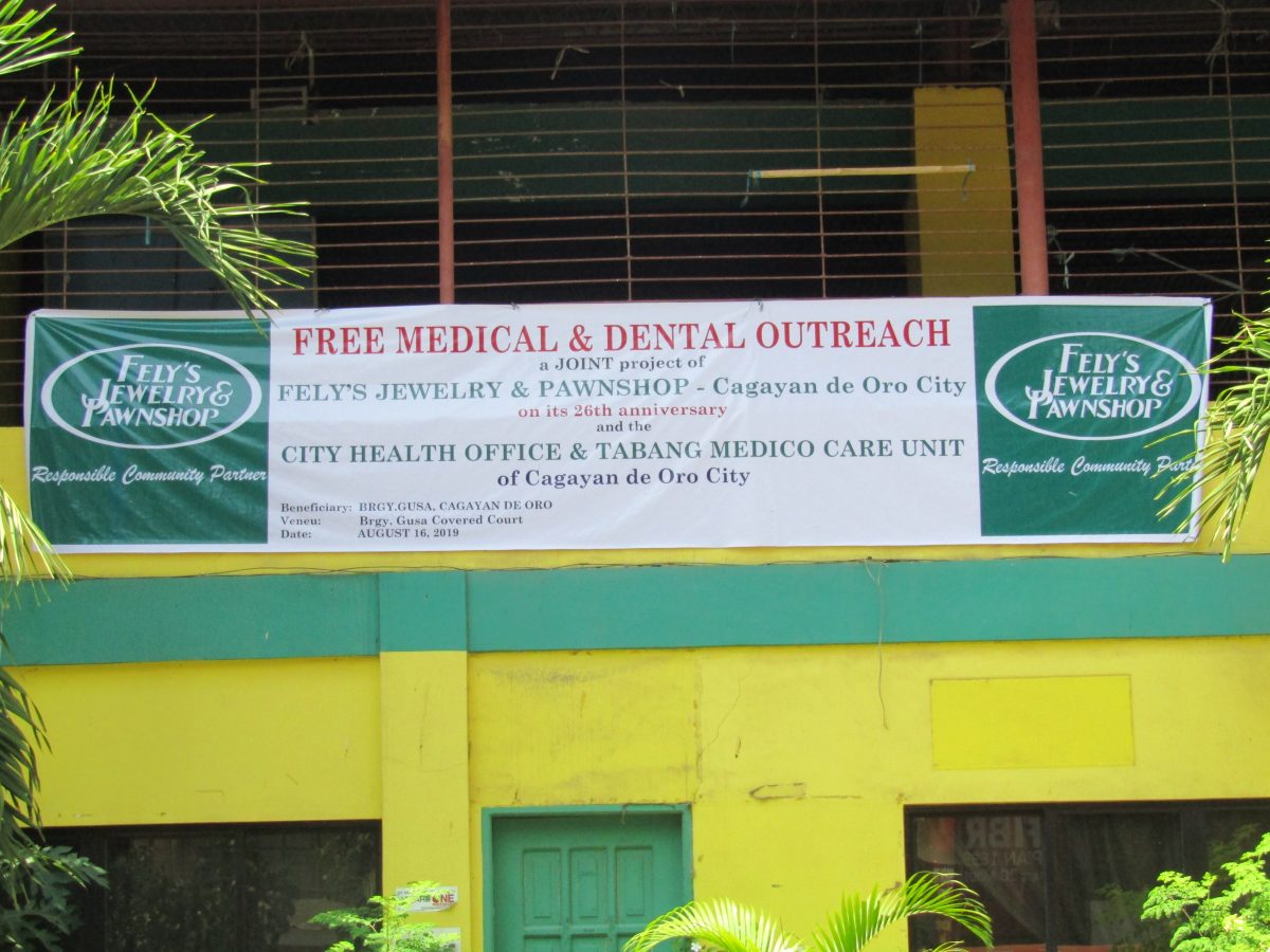 This year, Fely’s Jewelry and Pawnshop together with the Cagayan de Oro City Health Office and Tabang Medico Care Unit had successfully conducted a Free Medical and Dental Outreach Mission at Brgy. Gusa, Cagayan de Oro City, as the company celebrates its 26th Anniversary of being established at the City of Golden Friendship, Cagayan de Oro City.