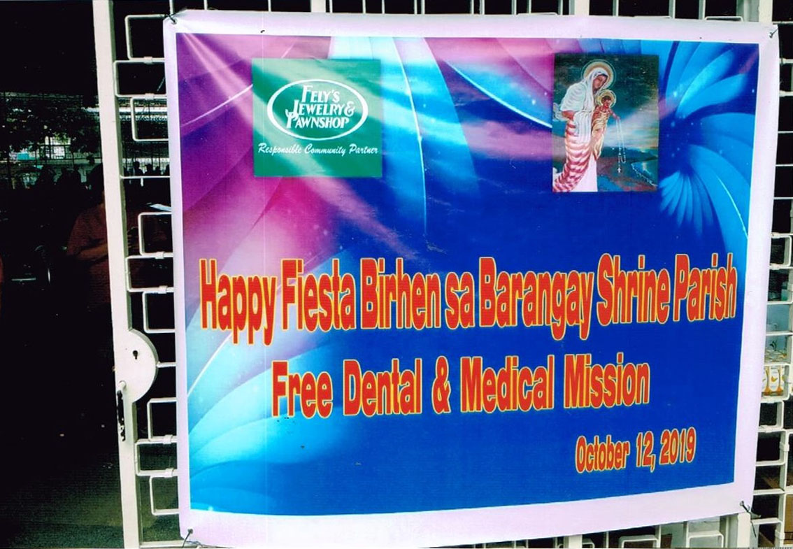 Finally, for the past 3 years, the Outreach Program of Fely’s Jewelry and Pawnshop found a home as part of the celebration of the Feast of Birhen sa Barangay Shrine Parish under Monsignor Jeffrey Malanog who is a classmate of the proprietor in elementary. Fely’s Jewelry and Pawnshop not only provide medicines and vitamins during the outreach but, also, stuff the church’s clinic with vitamins & medicines wherein poor parishioners can avail for free whole year-round. And this year the medical and dental mission has served for about 500 patients coming from the different parts of the City of Tagbilaran.